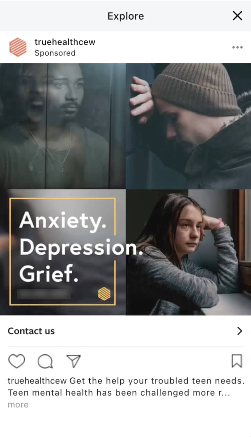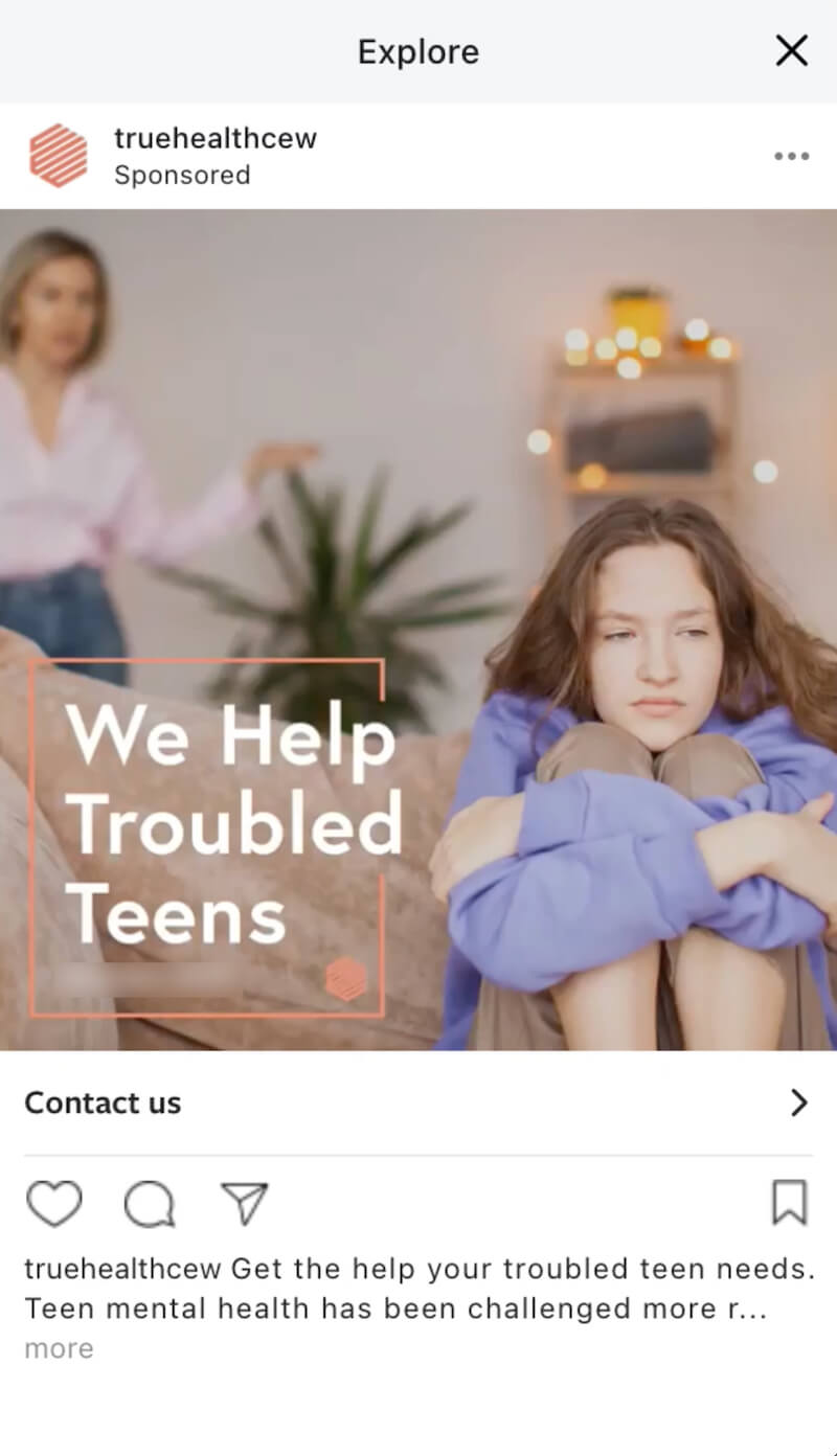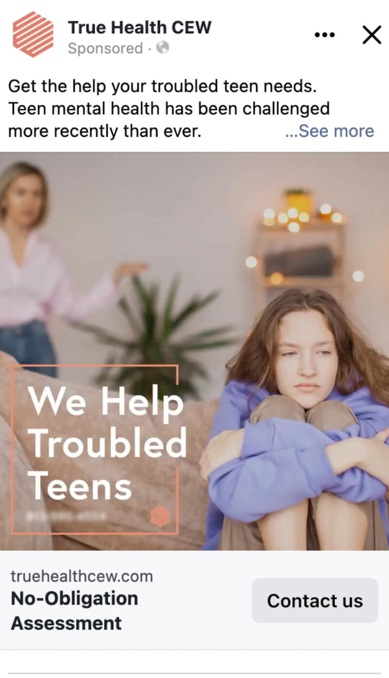 True Health’s Centers for Emotional Wellness originally wanted their online display ads to look like their website, with pictures of happy children. While we understood their viewpoint, we knew the main goal was to get adolescents who needed help through their doors. So, we tested different ads on social media. We found that Facebook ads targeted toward parents and showing sad children were the most effective. Why? The adults we were targeting did not see their kids reflected in the happier ads. They identified with the sad ads more, which garnered more engagement and raised more awareness for True Health.
